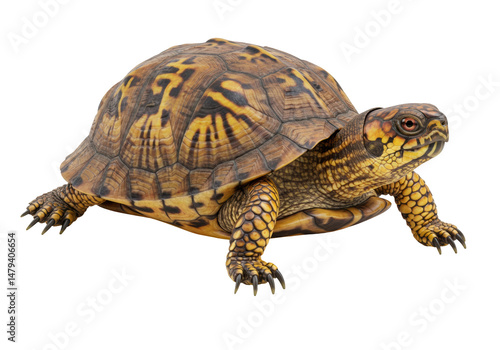 Obraz premium Box turtle isolated on white, detailed studio portrait of this turtle, slow turtle