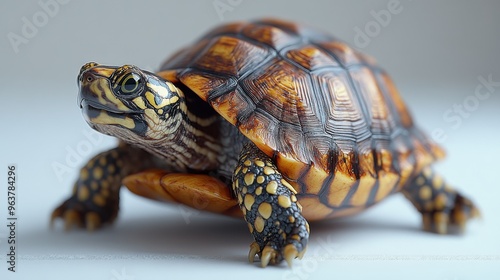 Obraz premium Box turtle walking on clean white surface