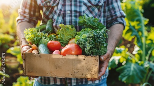 © Anna, Fototapeta premium box with vegetables in hands close-up. selective focus