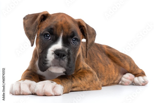 Obraz premium Boxer pup alone on a white backdrop