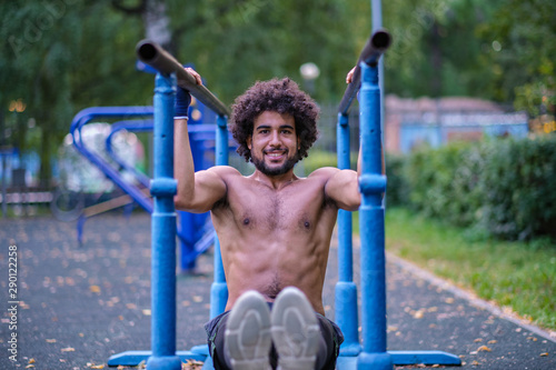 Obraz premium Boxer trains on a street sports ground
