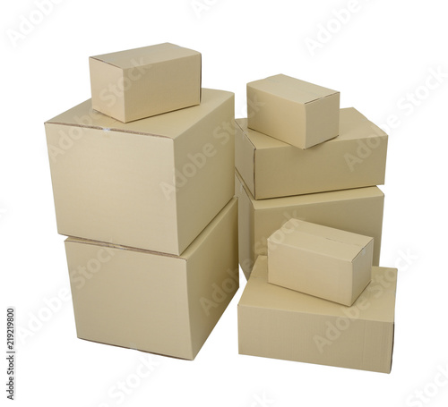 Obraz premium Boxes in different sizes stacked boxes isolated on white background