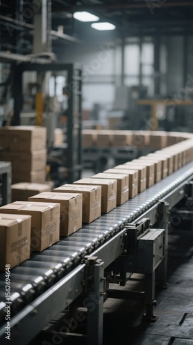 Naklejka premium Boxes Moving on Conveyor Belt in Warehouse