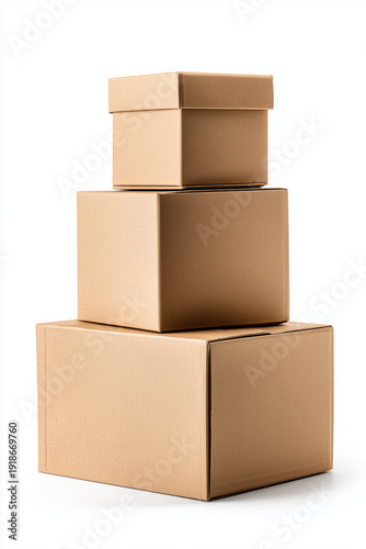 Fototapeta premium Boxes stacked in a storage area with a simple background and no labels