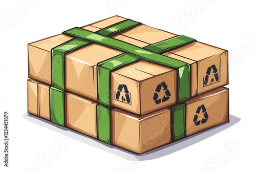 © ChaoticMind, Obraz premium Boxes wrapped in green straps showcasing eco-friendly packaging design for sustainable shipping solutions