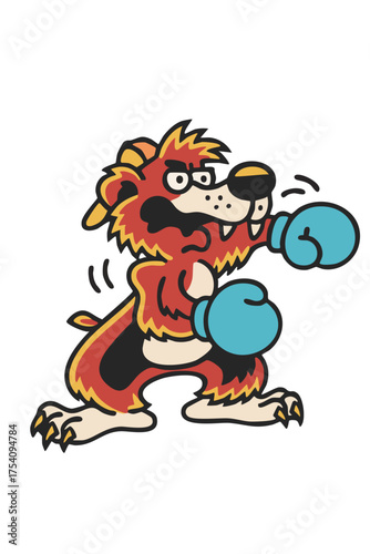 © Luka, Obraz premium Boxing Bear Cartoon Vector Illustration in Vintage Tattoo Style