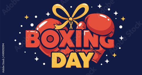 Naklejka premium Boxing Day Celebration Icon with Red Boxing Gloves, Ribbon, and Festive Stars