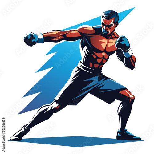 © MdAnisul, Naklejka premium Boxing fighter striking pose illustration fitness workout
