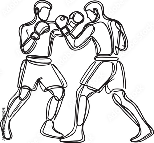 © mistah, Fototapeta premium Boxing Match Line Art - Two Boxers Fighting Vector Illustration