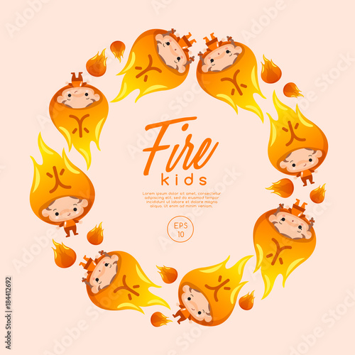 © da_on, Fototapeta premium Boy and Girl in Chinese Five Elements Hat : Vector Illustration
