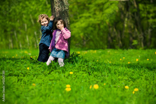© Aliaksei Lasevich, Fototapeta premium boy and girl in park