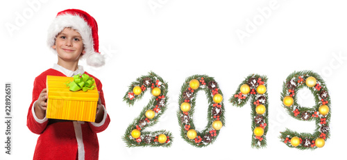 © Sergii Figurnyi, Obraz premium Boy holding a christmas gift