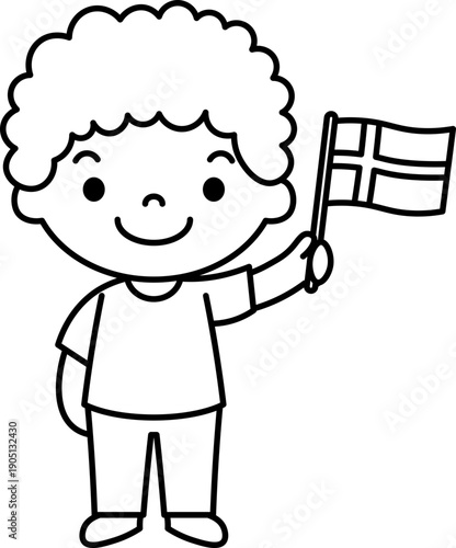 Obraz premium Boy Holding Danish Flag vector outline