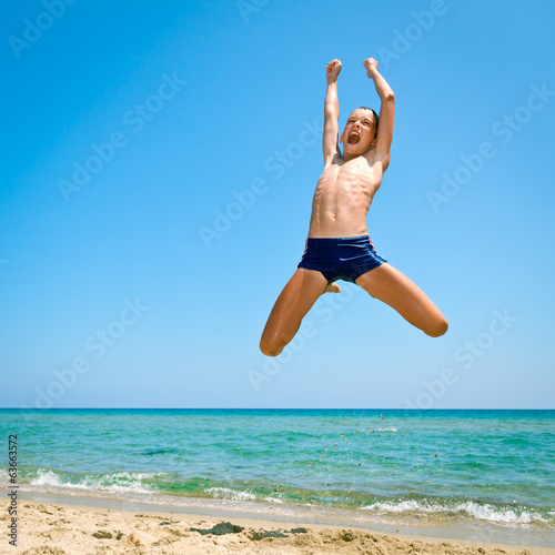Obraz premium Boy jumping on the beach