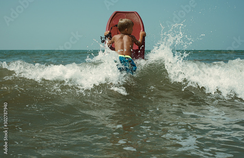 © Olivia Rich, Naklejka premium Boy jumping with bodyboard