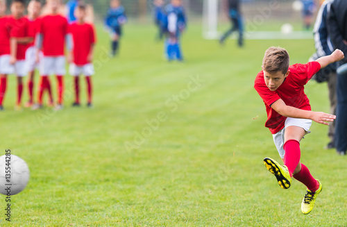 © Dusan Kostic, Obraz premium Boy kicking soccer ball