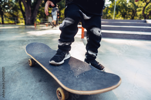 Fototapeta premium Boy legs on the skateboard close up image