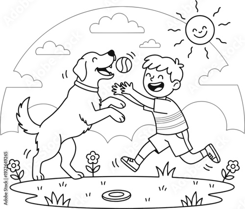Naklejka premium Boy playing with dog