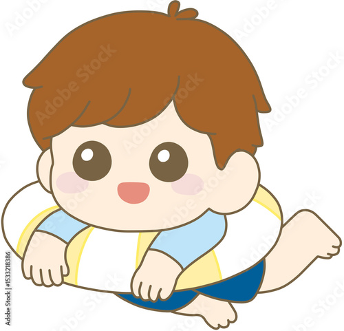 Fototapeta premium Boy Playing with Yellow Swim Ring, Summer Water Fun 남자아이, 물놀이, 튜브, 여름, 수영, 휴가