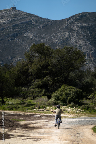 © bruno135_406, Fototapeta premium Boy riding bicycle on road