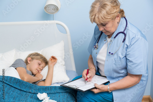 © Photographee.eu, Obraz premium Boy sleeping in hospital bed
