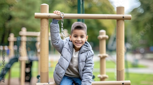 Obraz premium Boy Smiles on a Sunny Day Playground Adventure