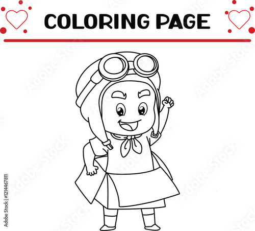 © MAHMUDA, Obraz premium boy with pilot helmet is wearing box coloring page for kids