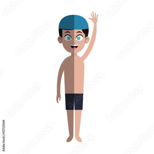 © Jemastock, Fototapeta premium boy with swimming sport equipment over white background. colorful design. vector illustration