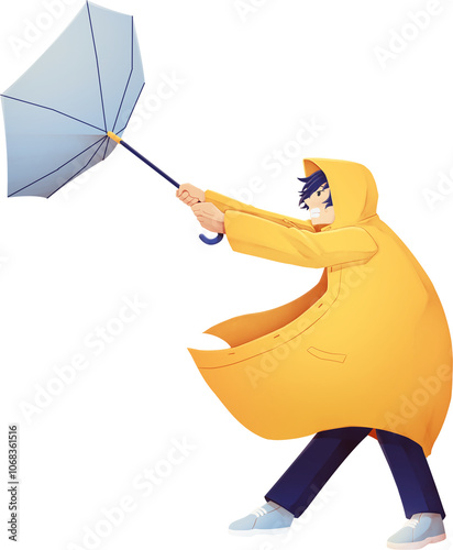 © Hydric, Fototapeta premium Boy with Umbrella Blown by the Wind Illustration