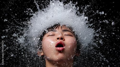 © KKC Studio, Fototapeta premium Boy with water splash creating dynamic effect on black background