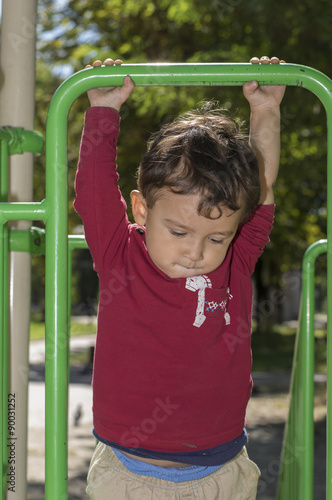 Fototapeta premium boy 2 years playing in the Playground