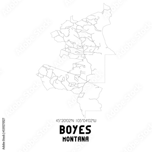 Obraz premium Boyes Montana. US street map with black and white lines.
