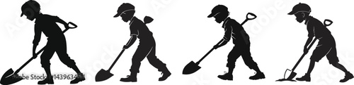 Obraz premium Boys Digging with Shovels Outdoor Work Children's Labor Concept Black Silhouette Vector Image