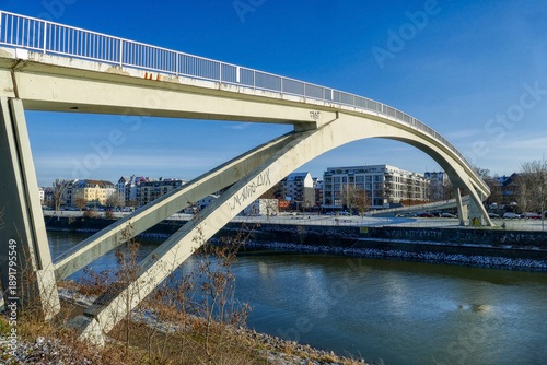 Fototapeta premium Brücke über den Binnenhafen in Köln Mülheim im Winter