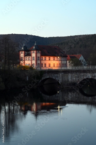 Fototapeta premium Brücke und Huttenschloss in Gemünden am Main
