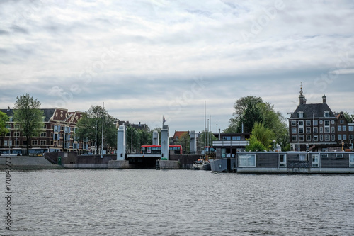 Naklejka premium Brücken Grachten und Schiffe in Amsterdam