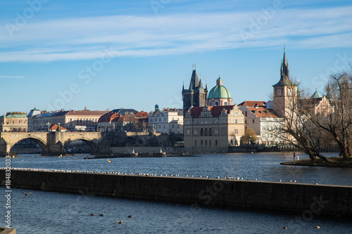 Naklejka premium Brückenturm und Karlsbrücke in Prag Tschechien