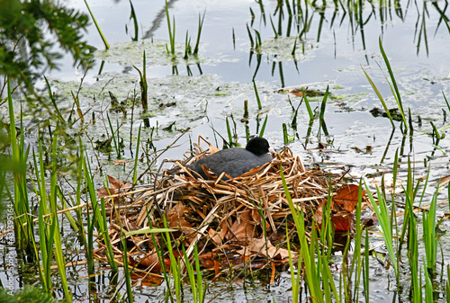 © Rhönbergfoto, Fototapeta premium brütendes Blässhuhn im Nest