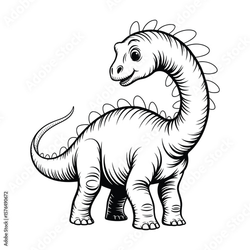 Fototapeta premium Brachiosaurus Coloring Page, Vector, Illustration, Icon, Outline, Line Art,...
