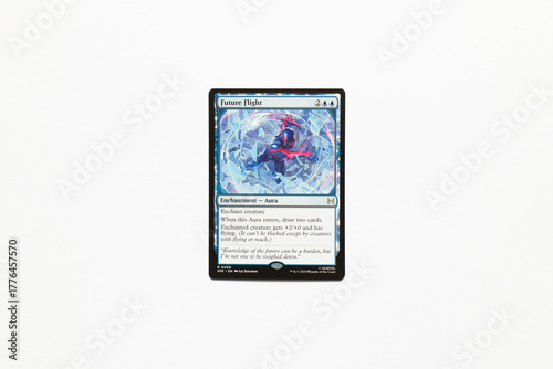 Obraz premium Bradford, UK Nov 3 2025 Future Light card from Spider-man magic the gathering card game shot isolated on a white paper background.