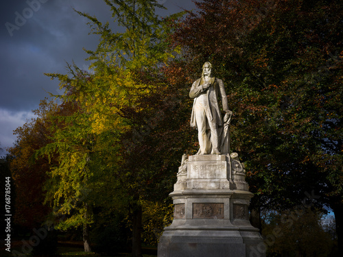 Fototapeta premium Bradford, West Yorkshire, England, United Kingdom, 25th October 2025, Statue of Samuel Lister in Lister Park