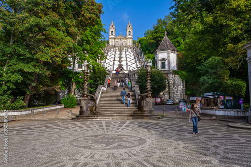 Obraz premium Braga, Portugal. Bom Jesus do Monte Sanctuary Basilica on top with Staircase...