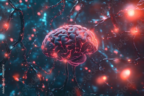 © MUdaylah, Fototapeta premium Brain connections, digital 3d artwork illustration with generative ai