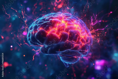 © MUdaylah, Fototapeta premium Brain connections, digital 3d artwork illustration with generative ai