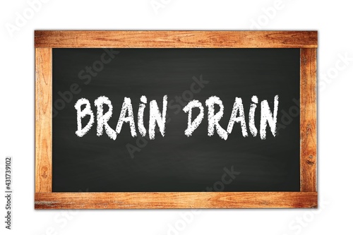 Fototapeta premium BRAIN DRAIN text written on wooden frame school blackboard.