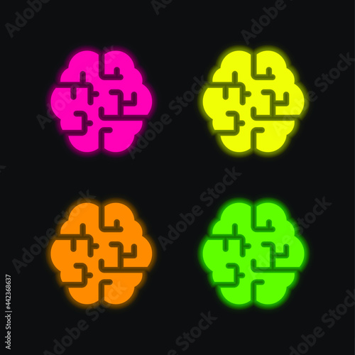 Obraz premium Brain four color glowing neon vector icon
