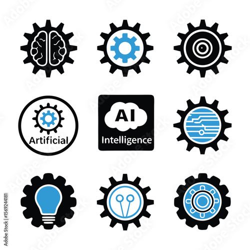 © Shilastock, Obraz premium Brain gears ai icons set