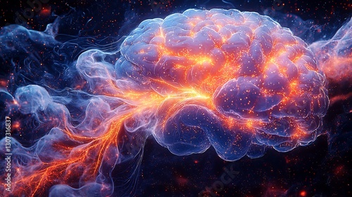 Fototapeta premium Brain illuminated with neon colors waves of energy pulsing through neural pathways representing the release of neurotransmitters during stimulant use in vivid electric hues