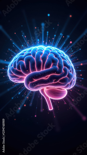 Fototapeta premium Brain with a burst of artificial intelligence energy behind it, symbolizing AGI development.