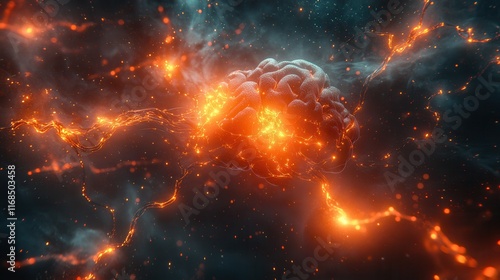 Fototapeta premium Brain With Fiery Neural Connections